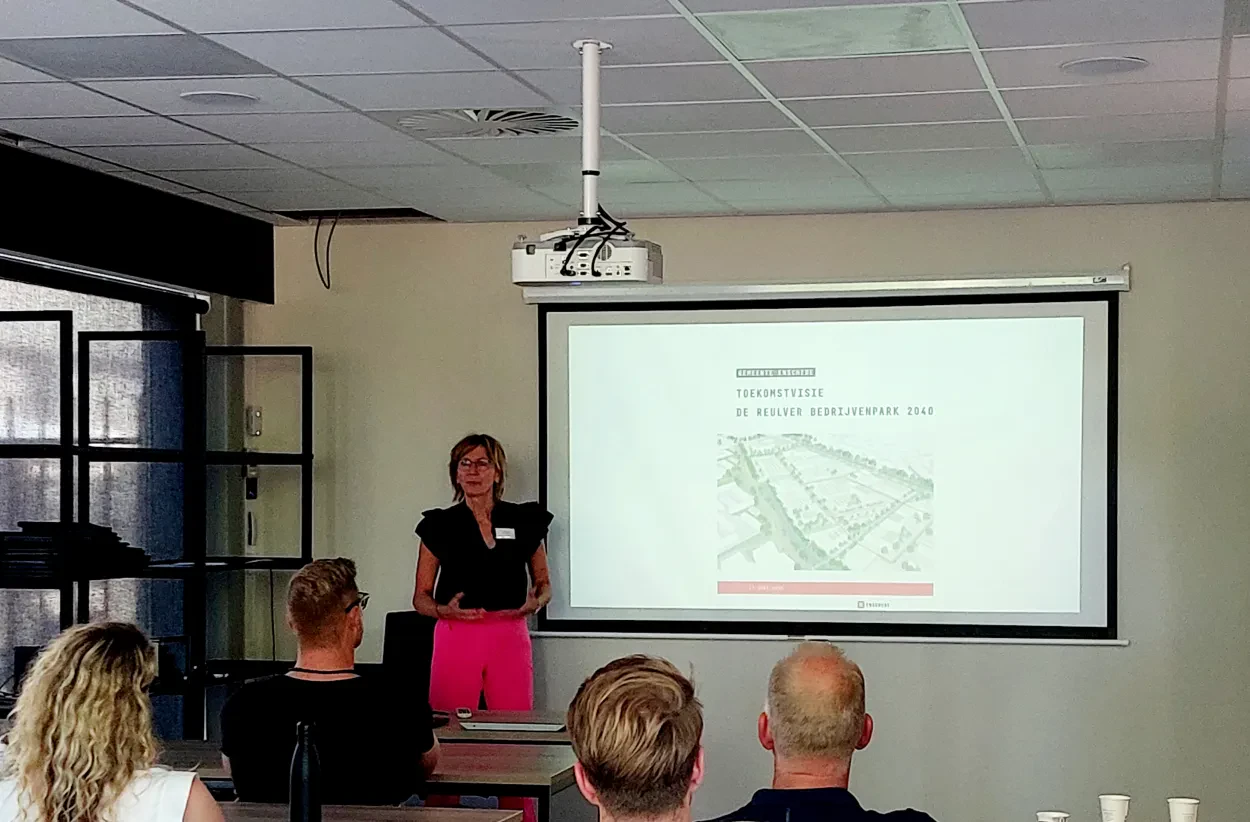 De gemeente Enschede gaf een boeiende toelichting op de toekomstvisie voor het bedrijventerrein. Deze visie is in samenspraak met ondernemers en omwonenden opgesteld. Na afloop was er volop gelegenheid om met elkaar in gesprek te gaan over de plannen, of om informeel kennis te maken onder het genot van een hapje en een drankje.